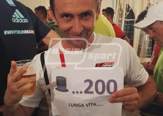 Assisi Runners, grande traguardo per il presidente Fabio Battistelli che taglia quota 200. “E sono 200 – si legge in una nota diffusa via Facebook dai “colleghi” di avventure – il nostro insuperabile presidente ieri sera (giovedì 4 luglio 2019, ndr) con la notturna di Città di Castello è arrivato a quota 200 gare in 10 anni di attività. Complimenti Press!!! – concludono felici”.