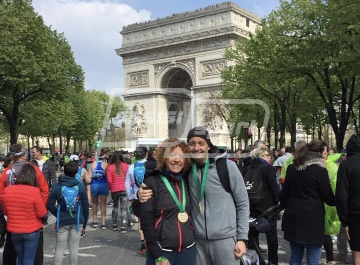 Nella foto in evidenza, Simona Diosono e Maurizio De Falco contenti del traguardo ottenuto, posano con la medaglia da Finischer davanti all’Arco di Trionfo, simbolo Parigino dove parte ed arriva la maratona.