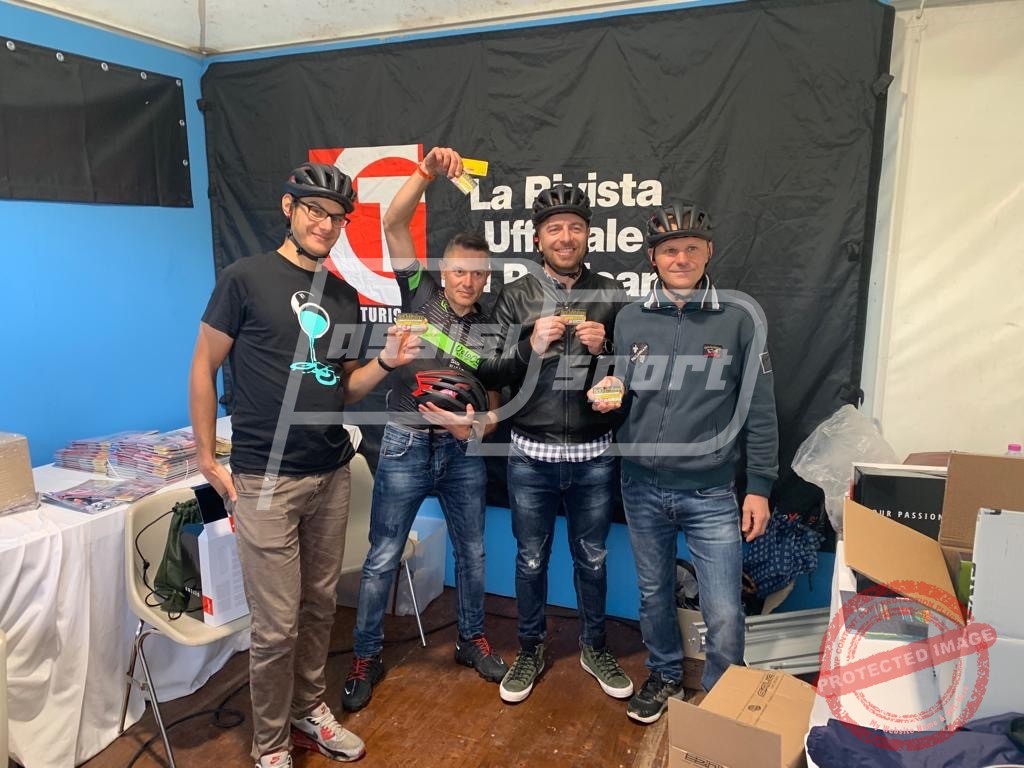 Ma già dal sabato sono iniziate le ribalte per il Velo Club. Ivan Rossi infatti è stato premiato dal Bici Club Italiano con un bellissimo casco Met per aver vinto un concorso fotografico effettuato tra moltissimi loro tesserati. Tornando alla gara, moltissimi atleti del Velo Club erano indirizzati sul percorso lungo di 207 km e 9 colli, ma le avverse condizioni meteo hanno costretto alcuni a deviare per il corto di 130 km e 4 colli.