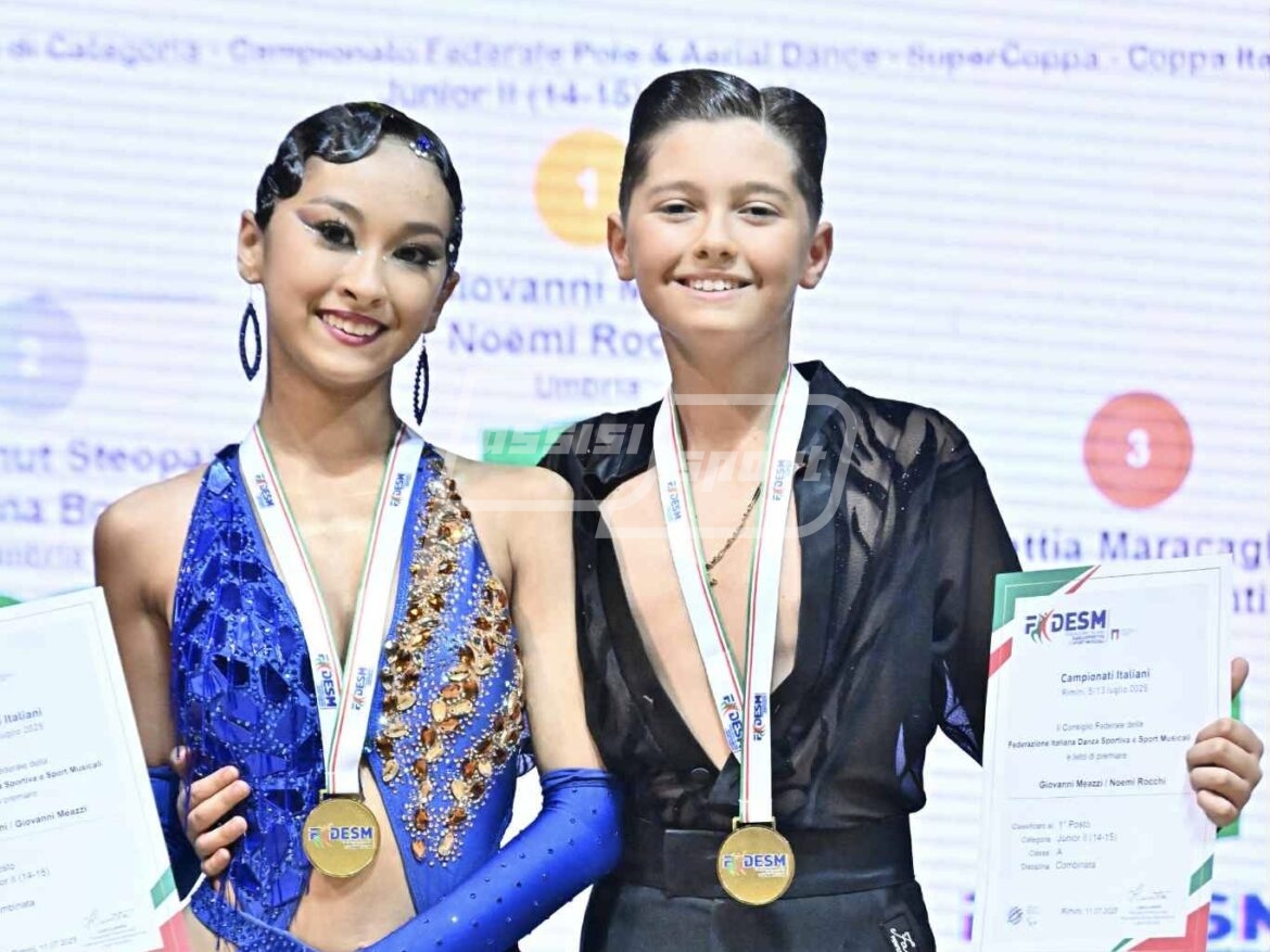Ottime notizie dal mondo della danza sportiva. Dal 5 al 13 luglio a Rimini si sono tenuti i campionati italiani Fidesm 2025. A prendervi parte anche Giovanni Meazzi e Noemi Rocchi – allievi della ASD Asso di Cuori – i quali hanno ben figurato nella categoria 14/15 classe A.