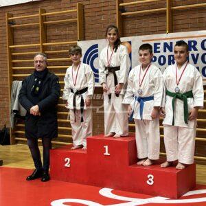 Medaglia di bronzo nel kumite per Matias Borsellini, classe 2010, che dimostra tenacia e una grande voglia di mettersi in gioco! Bel risultato anche per Chanel Ronca, classe 2011, anche se non riesce a convincere gli arbitri con la sua precisa esecuzione del kata, riesce ad aggiudicarsi la medaglia d’argento nel kumite con un solo punto di distacco dalla vincitrice di categoria. Ottima prestazione per Diego Elisei, classe 2013, che supera 3 turni nella competizione di kata, anche se viene sconfitto nella finale da una cintura maggiore. Bellissima medaglia d’argento per lui su 20 avversari. Raggiunge invece il primo gradino del podio nel kumite dove supera un avversario dopo l’altro mostrando determinazione e un ampio bagaglio tecnico.