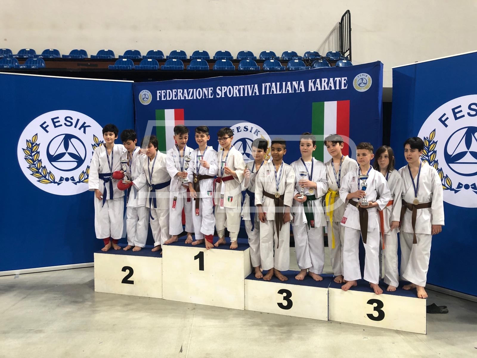 Nella competizione di kumite (combattimento) i più piccoli in gara salgono di nuovo sul podio Alessandro Rudyshyn che si aggiudica il terzo posto e Luca Dornescu che arriva primo in Coppa Italia, entrambi nella categoria più numerosa del campionato italiano. Un’altra medaglia dorata va a Nicola Pacifici che dopo essere uscito dalla corsa per il titolo italiano, si riscatta nella coppa Italia. Bronzi invece per Mattia Cipiciani e Simone Fabrizi nel campionato e per Mattia Cimignoli e Angela Fabrizi nella coppa Italia.