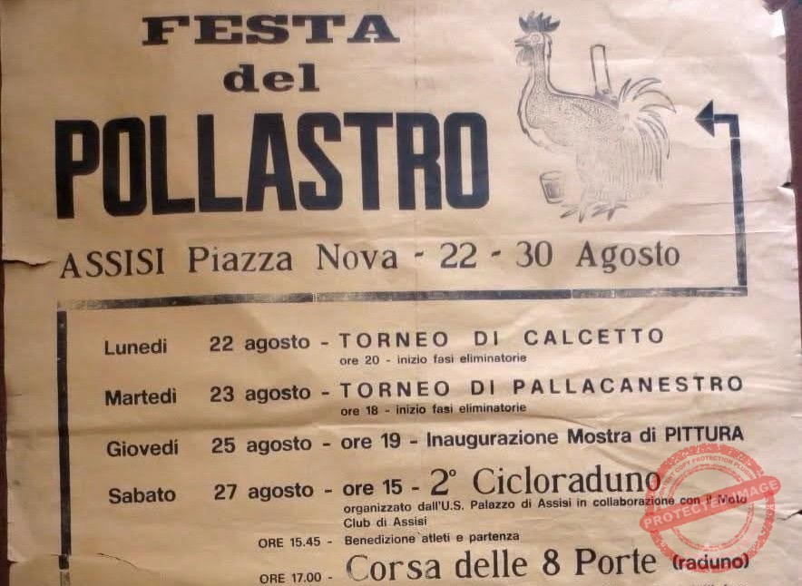 Una tradizione lunga decenni. La Marcia delle 8 Porte, infatti, per la prima volta venne corsa cinquant’anni fa in occasione della festa del pollastro, che si teneva a Piazza Matteotti, per gli assisani a “Piazza Nova”, e che ai tempi veniva denominata la Corsa delle 8 Porte, con un percorso di 4,5 chilometri, invece degli odierni 7, e si univa anche ad altre manifestazioni sportive alla festa del pollastro, tra cui il torneo di calcetto e di pallacanestro. Tanti i ricordi di chi a quel tempo ha vissuto la festa, che esaltava i sapori del pollo allo spiedo.