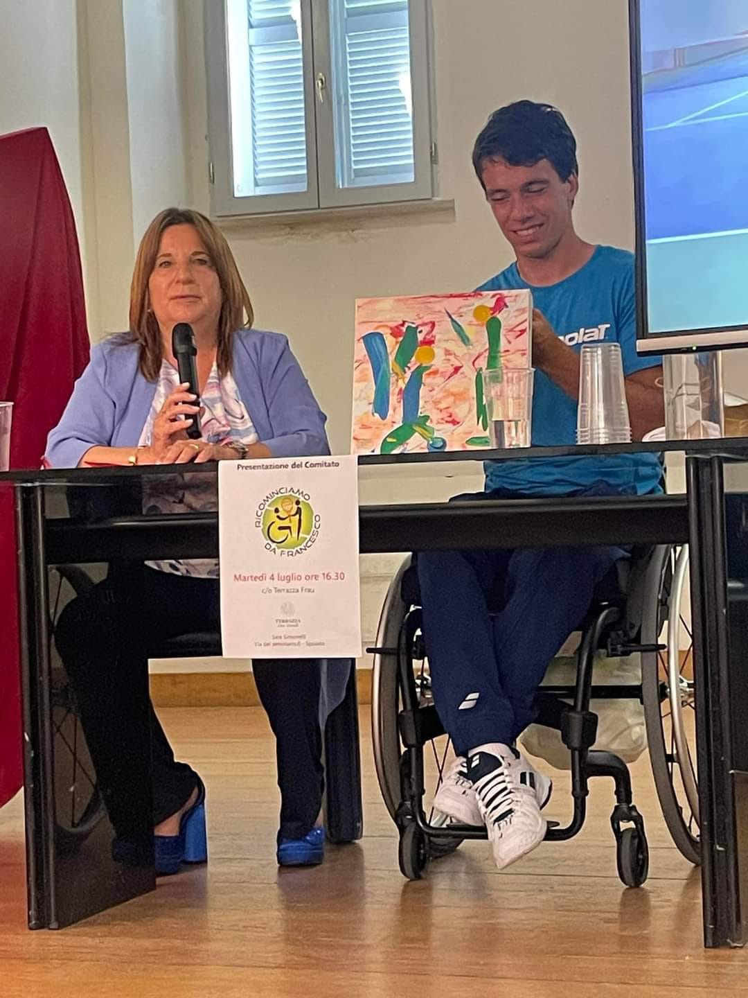 Il Comitato è stato fondato per sostenere le eccellenze sportive del tennis in carrozzina e favorire la sua pratica agonistica paralimpica. Per questo, alla presentazione, è stato scelto come rappresentante Francesco Felici, campione italiano di wheelchair tennis e numero due della classifica mondiale juniores. Un pomeriggio significativo per tutti i presenti – intervenuti per sostenere l’associazione – che ha dato il via alle iniziative del Comitato “Ricominciamo da Francesco”.