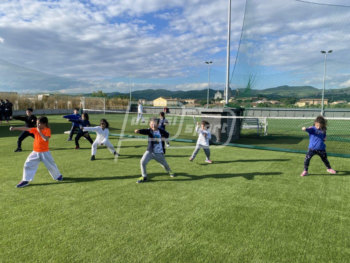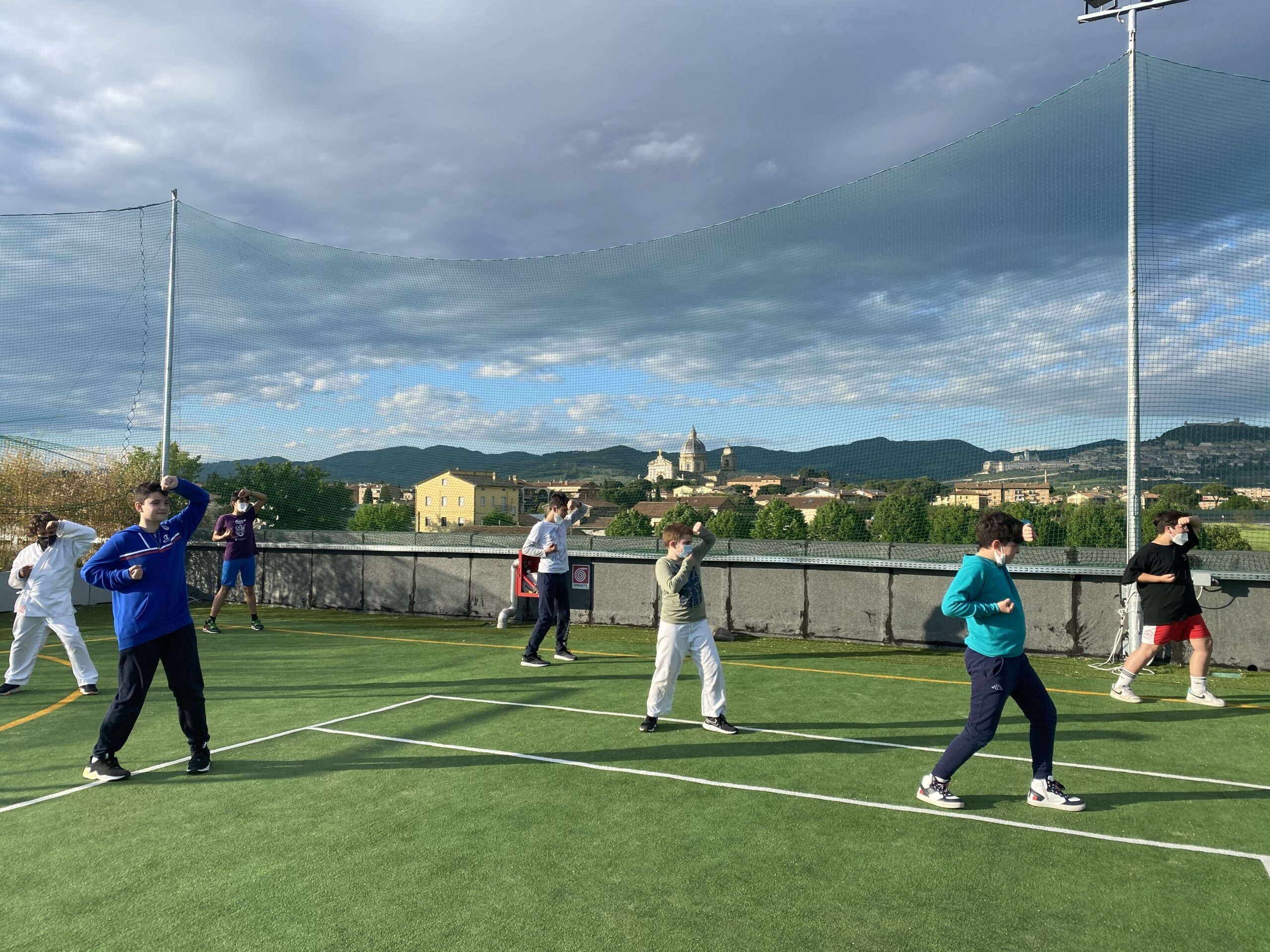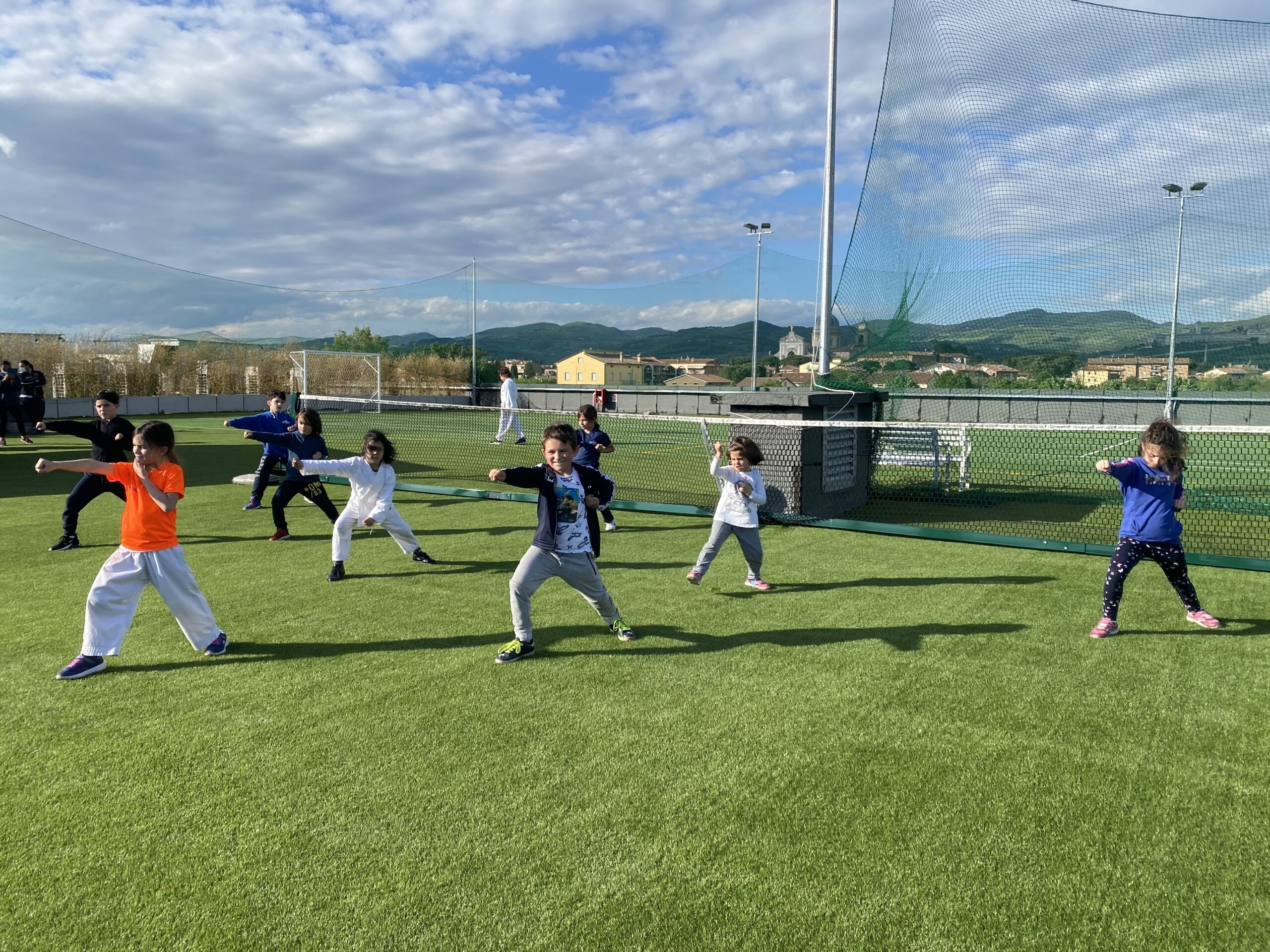 Dall’inizio di aprile per la palestra Epyca sono ripartiti i corsi di karate in presenza di bambini, ragazzi e agonisti. Gli atleti sono tornati ad allenarsi in sicurezza, oltretutto con delle novità: i karateka potranno allenarsi nella parte superiore dell’edificio del CTF Wellness, ospitati dall’Assisi Padel, dove è stato creato un bellissimo campo polivalente, il tutto contornato da una splendida vista su Assisi e dintorni. Un altro chiaro segnale di ripresa e di ritorno – il più possibile – al movimento e alla normalità. (Continua dopo la foto)