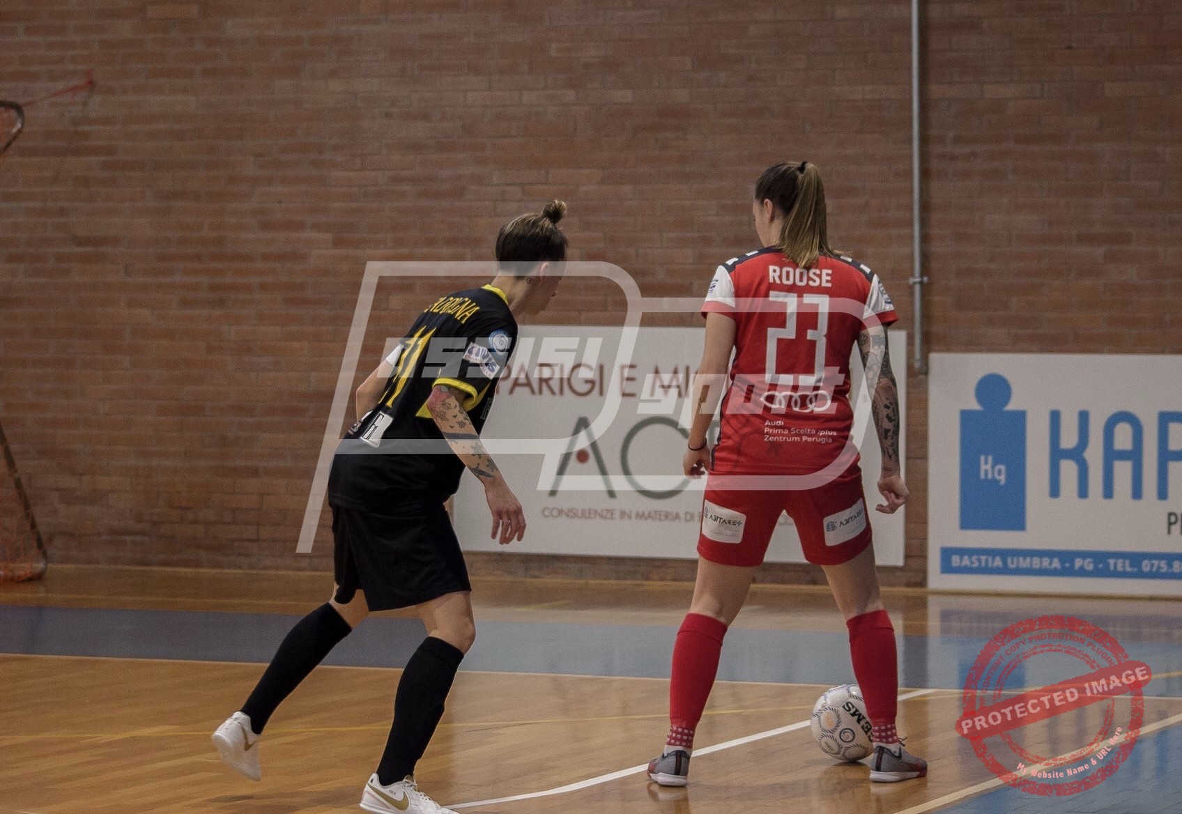 Nelle foto, di Chiara Masilla / Ufficio Stampa Perugia Futsal, Emily Jane Roose con la maglia numero 23 (prima da sinistra nell’immagine in evidenza).