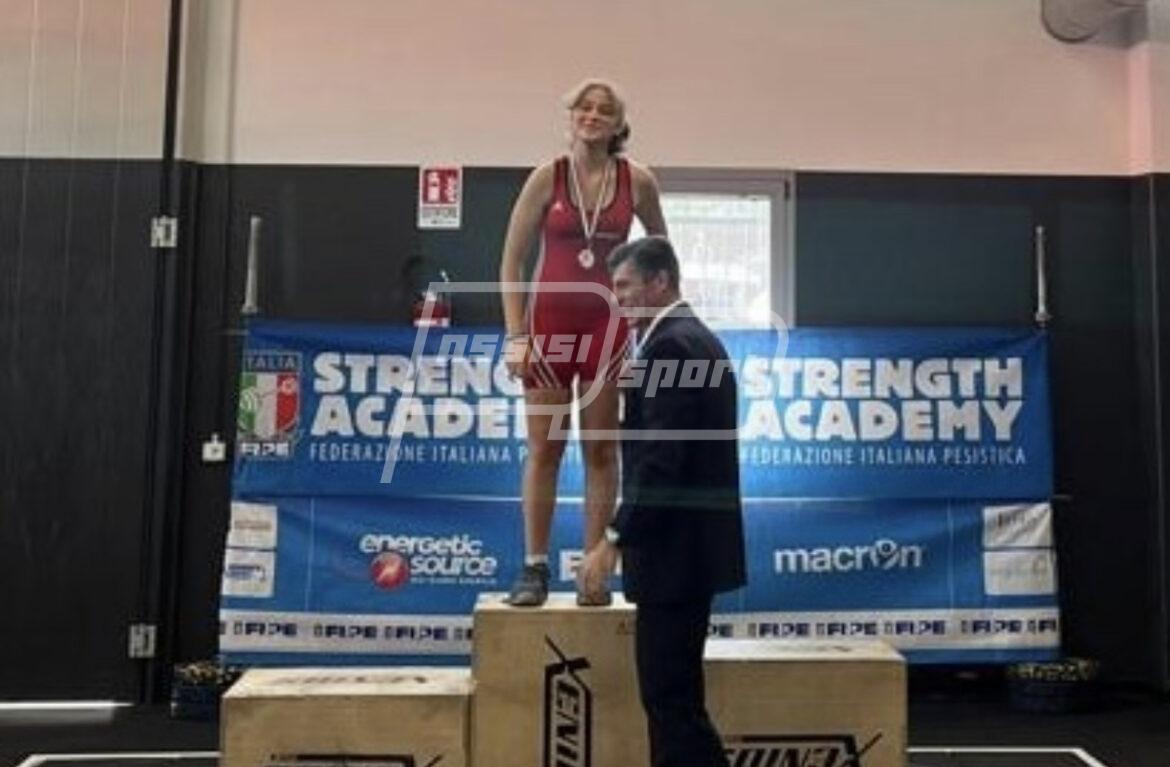Nella gara per i Campionati Italiani Esordienti under 13 peso 64 kg, Verena Falcinelli si è classificata prima nella specialità di strappo con 26 kg e prima nello slancio completo con 32 kg.
