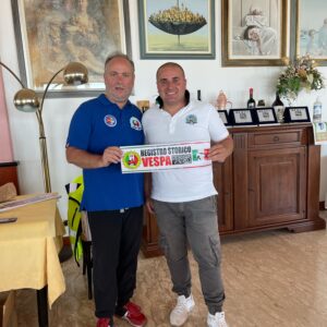 Tappa diversa per la presidente Giada Pauselli e Giuseppe Reccia che hanno preso parte al II Raduno Nazionale Vespa T5 organizzato dal Club di Sant’Egidio alla Vibrata, in Abruzzo. Proprio Reccia, partecipando alla gara di lentezza, è salito sul podio al secondo posto.