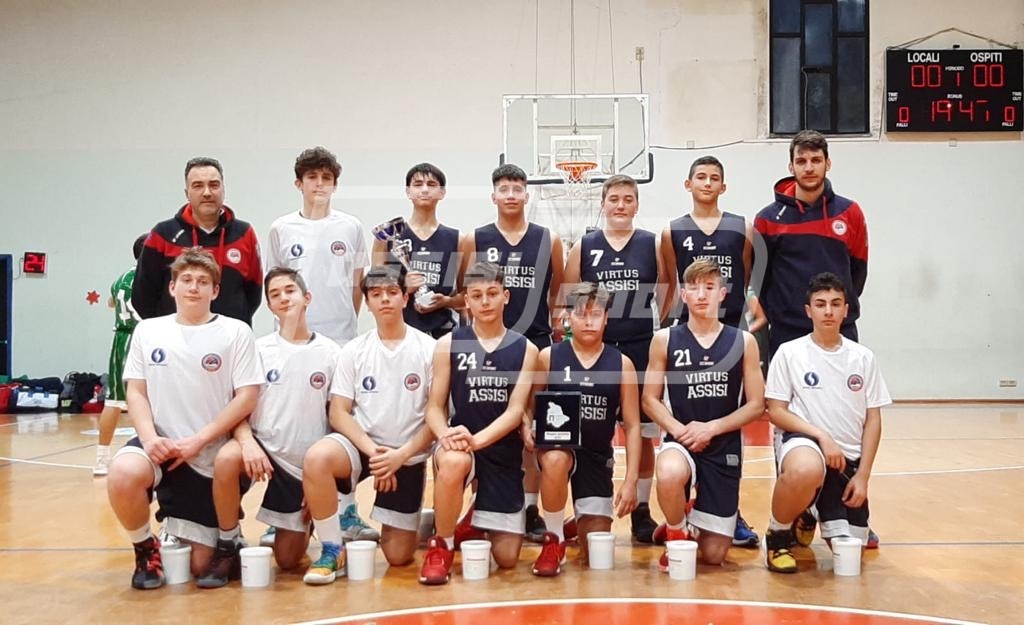 Virtus Assisi Under 15 in trionfo. Al Pala Foccià di Perugia, i giovani ragazzi di coach Francesco Santantonio hanno vinto la partita valida per l’assegnazione della Coppa Grifetto, che ha i visto i ragazzi dell’Under 15 Gold rossoblu affermarsi sugli avversari del Perugia Basket U15 Gold. (Continua dopo la foto)