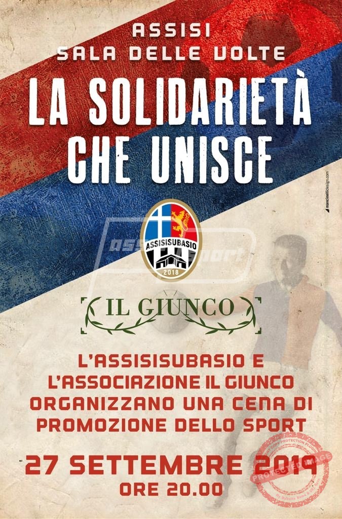 Importante iniziativa organizzata dall’Assisi Subasio. Venerdì 27 settembre alle 20 presso la sala delle volte ci sarà infatti una cena “per ringraziare gli amici dell’associazione “il Giunco” nell’averci supportato per la campagna abbonamenti 2019/2020” – si legge in una nota della società di calcio assisiate.