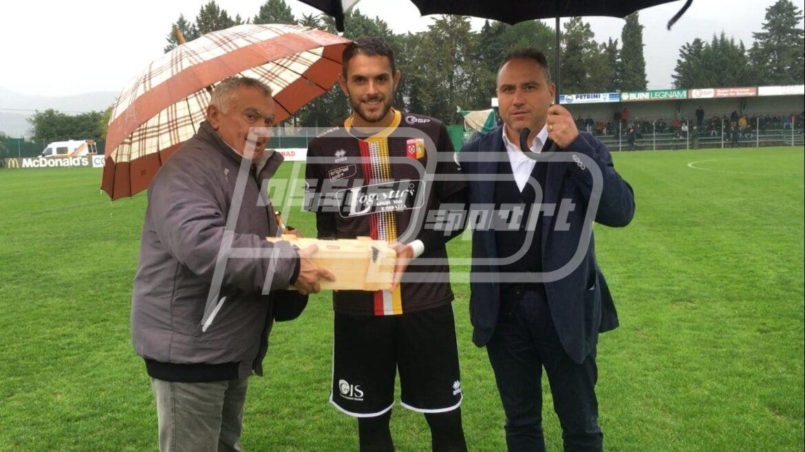 Prima della gara, la premiazione di Passeri (MVP mese di Ottobre) da parte dell’ex presidente Candido Cristofani (foto in evidenza).