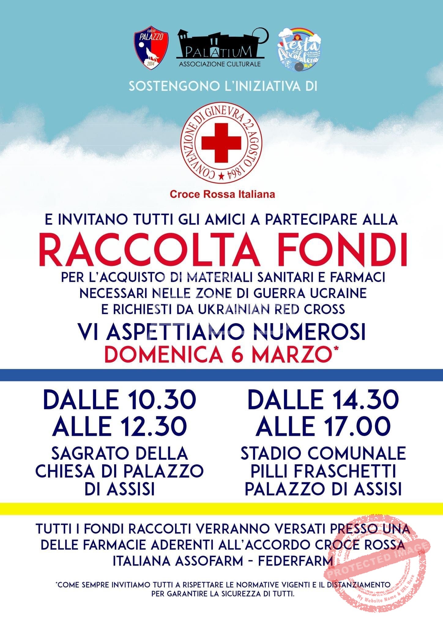 “Sappiamo che Croce Rossa – continua la nota – conoscendo le necessità della sua gemella ucraina con cui è in contatto costante, ha stretto un accordo con Assofarm e Federfarm Umbria per la raccolta di materiali sanitari e farmaci. In virtù di questo accordo noi e Calcio Palazzo ci impegneremo in una raccolta fondi che verrà versata in una delle farmacie aderenti. Inutile dirvi che il tempo stringe quindi noi vi aspettiamo numerosissimi”. La raccolta fondi si terrà domenica dalle 10.30 alle 12.30 presso il sagrato della chiesa di Palazzo di Assisi e dalle 14.30 alle 17.00 presso lo stadio comunale Pilli Fraschetti di Palazzo di Assisi.