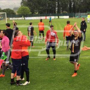 Ci vorrebbero fiumi di inchiostro per sintetizzare quel che passa nella mente dei giallorossi a fine partita. Giorgio Buttò riesce a mostrarsi lucido, oltre che contento: “Alla fine credo che si sia salvata la squadra che ha meritato di più, considerando anche le occasioni avute nel corso della prima parte di gara. Detto questo, onore alla Pontevecchio che esce a testa altissima e che è andata davvero vicinissima all’impresa. Credo però che quando una squadra in 10 partite riesce a segnare 4 volte dopo il 90’ non si possa parlare di fortuna, ma piuttosto di attitudine e grande determinazione. Questo gruppo, al netto delle difficoltà che ha incontrato, non ha mai mollato un centimetro e ha sempre creduto che potesse riuscire a raggiungere il proprio obiettivo. Sono felice per i ragazzi perché meritano questa gioia. Personalmente ritengo il mio lavoro concluso: sono un tecnico con una vocazione per l’ambito giovanile, ho risposto con senso di responsabilità alla chiamata della società quando mi è stato chiesto di guidare la prima squadra, ma ritengo che il mio futuro sia in una veste differente da quella degli ultimi due mesi e mezzo. Ad ogni modo ne parleremo assieme alla dirigenza: ora godiamoci la festa e, da buon eugubino, mi preparo ai Ceri, senza dimenticare che c’è la Juniores impegnata nella rincorsa alla promozione A1, oltre ai Giovanissimi attesi dalla fase nazionale”. Il più felice di tutti a fine gara è però Marco Barbacci, per il quale il gol salvezza profuma di riscatto: “Sono davvero contento ed emozionato. Dedico questo gol ai miei compagni che hanno lavorato assiduamente in tutti questi mesi. Ci meritavamo la salvezza, era incredibile quello che stava maturando sul campo. Personalmente ho vissuto un’annata bella fuori dal campo, anche perché la società non c’ha mai fatto mancare nulla. Di sicuro avrei voluto giocare di più e in modo diverso, ma alla fine in queste ultime giornate il destino mi ha consegnato una chance e io sono felice di averla sfruttata. Questa giornata resterà un ricordo indelebile nella mia vita”. Il più stravolto è certamente Simone Tarpanelli, che ha vissuto la gara quasi tentando di entrare in campo, vivendo i supplementari col cuore in gola: “Ammetto di non essere stato lucidissimo in quei momenti, ma questa salvezza per noi era troppo importante. Siamo in un momento di crescita incredibile, come testimoniano i lavori allo stadio e l’imminente partenza dei tornei di fine stagione. Stiamo tornando su livelli di eccellenza in ambito giovanile e avere una prima squadra a questi livelli è imprescindibile. Sono stravolto ma felice perché ancora una volta i ragazzi hanno dimostrati di meritare fiducia, stima e considerazione. Buttò ha fatto un lavoro straordinario: è de sempre un uomo della società e sapevo che avremmo investito bene sul suo conto, come testimoniano le 5 vittorie, tre pari e due sole sconfitte della sua gestione. Molti sostenevano che avessimo messo alla guida della squadra un preparatore atletico, anziché un allenatore, e chissà adesso se chiederanno scusa… detto questo, un ringraziamento lo rivolgo anche a Carlo Valentini che nella prima parte della stagione ha fatto il possibile per guidare questo gruppo, pagando dazio alla sfortuna sottoforma di infortuni (vedi De Santis) ed episodi negativi. Adesso ci godiamo questa salvezza, ma presto cominceremo a pensare a un’annata nella quale vogliamo provare a cambiare il corso degli eventi”.