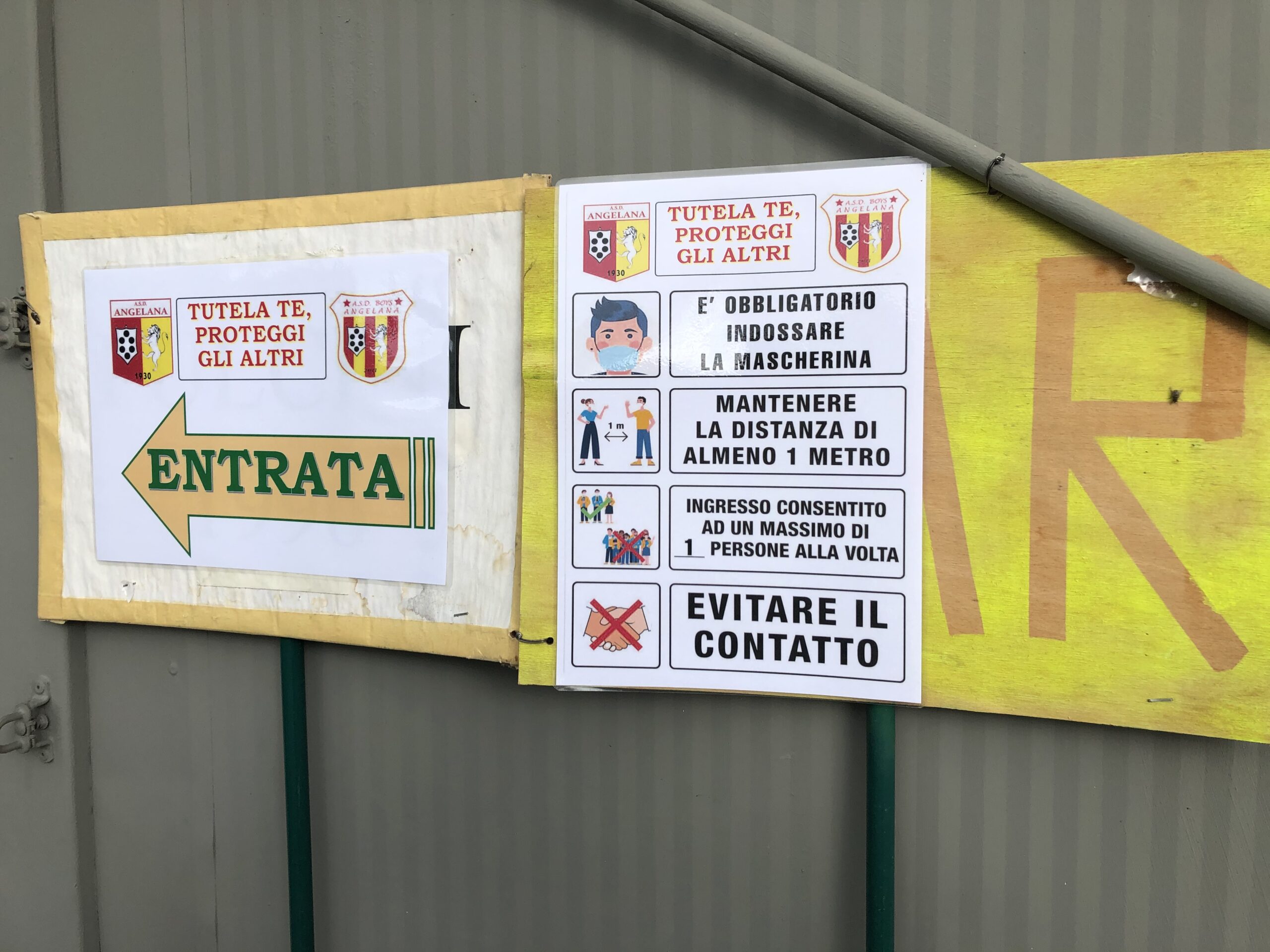 Porte chiuse al “Migaghelli” in uno scenario non entusiasmante. Misure anti-Covid rispettate e distanziamenti fra i pochissimi presenti delle due società. Angelana che riparte in sicurezza, separazioni distanziali ed igienizzazione al bar, misurazione della temperatura e autocertificazione per gli accessi a numero chiuso.