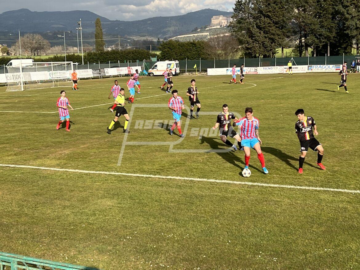 Al riposo ospiti avanti di un gol e squadre che si schiariscono le idee negli spogliatoi. Nella ripresa l’Angelana attacca, ma la squadra ospite è quadrata e rimane bene in campo. Fin qui il cinismo degli ospiti ha la meglio. Giallorossi che non sfruttano importanti occasioni davanti alla porta avversaria e la partita si mantiene sullo stesso risultato. Gara nervosa con la Fortitudo che ha anche l’occasione per raddoppiare. Finisce 0-1 per gli ospiti. Per la Fortutudo Assisi Subasio una boccata di ossigeno per la classifica. Per l’Angelana uno stop inatteso. (Continua dopo il video dell’intervista)
