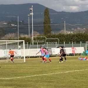 Derby avvincente al “Migaghelli” Santa Maria degli Angeli fra Angelana e Fortitudo Assisi Subasio. Una partita giocata a viso aperto dalle due squadre in una bella giornata di sole. Derby sentito come in ogni occasione per una partita che ha regalato emozioni ai presenti. Dopo ampie fasi di studio ed un maggiore possesso dell’Angelana, la Fortitudo Assisi Subasio va in vantaggio al 24º del primo tempo con un gol di Libonatti. Tiro dalla lunga distanza che batte il portiere giallorosso: 0-1. Partita bella, veloce, a tratti nervosa per l’importante posta in palio. (Continua dopo il video dell’intervista)