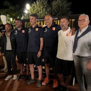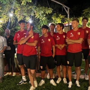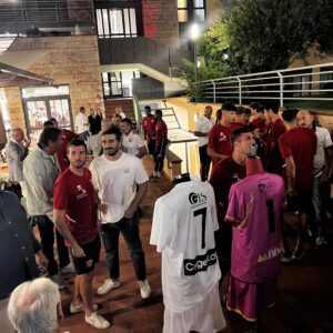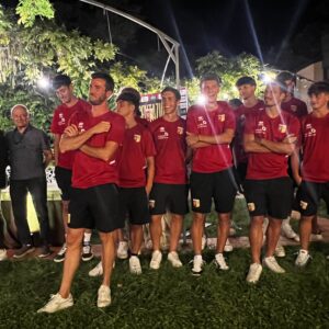 Durante la serata, andata in scena martedì 3 settembre, anche tante risate, racconti e aneddoti, canti e balli con i “nuovi” calciatori italiani, stranieri e alcuni ‘calienti’ sudamericani, prima di tuffarsi in una nuova stagione che si preannuncia avvincente: “Feci una multa al mio ex compagno di squadra Thomas Ventanni (ora non più in giallorosso, ndr) – ha raccontato un sorridente Francesco Melillo incalzato da Nicola Agostini presentatore della serata – ma devo dire che aveva parcheggiato veramente male. Ma poi la multa gliel’hai tolta? Ma assolutamente no – ha sottolineato Melillo – gli dissi che la multa era meritata…”.