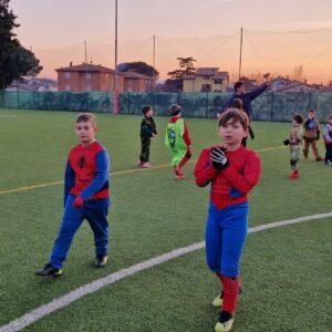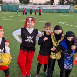 Il settore giovanile dell’Angelana ha festeggiato a modo suo il Carnevale. Tutte le formazioni della scuola calcio “Lucio Tarpanelli” infatti , nella giornata di lunedì 20 febbraio, hanno svolto gli allenamenti rigorosamente in maschera. Un pomeriggio fuori dall’ordinario che ha regalato sorrisi e ha fatto divertire i piccoli atleti giallorossi.