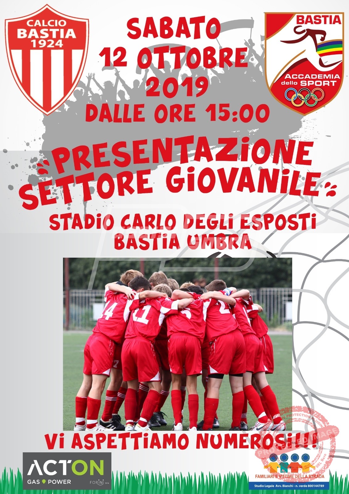 Sabato 12 Ottobre presso lo Stadio Comunale “Carlo Degli Esposti” alle ore 15 si terrà la presentazione del Settore Giovanile del Bastia Calcio 1924. Invitati all’evento genitori, bambini e ragazzi per una festa con famiglie, istituzioni e abitanti della città.