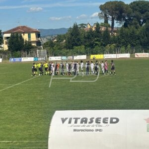 Ad inizio ripresa le sorti della sfida si indirizzano in favore della Rivo. Infatti, in apertura di secondo tempo – nello specifico al 5° – la formazione di Taccucci trova il gol del vantaggio – alla prima vera occasione della partita – quando dagli sviluppi di un corner Ciammarughi svetta sopra di tutti e di testa insacca per l’1-0 biancoazzurro. Una rete che sarà decisiva per l’economia della partita, con la Rivo Subasio che da lì in poi amministra al meglio il vantaggio fino al termine del match, riuscendo a tamponare ogni tentativo degli avversari di pareggiare.