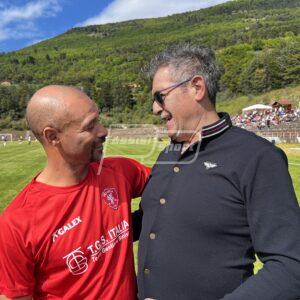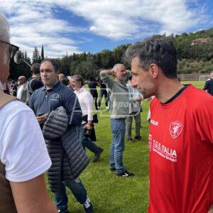 (Stefano Berti) Una domenica da ricordare quella trascorsa oggi domenica 5 maggio allo Stadio Degli Ulivi di Assisi. Tantissimi i campioni e gli ex campioni che si sono radunati allo stadio assisano che non si vedeva così come oggi ormai da troppi anni per onorare la memoria di Luciano Gaucci, ex presidente del Perugia e padre del presidente dell’Assisi Calcio 2023 Riccardo Gaucci. Spalti gremiti, tifosi ed appassionati, famiglie. A ringraziare tutti dai microfoni di Assisi Sport è colui che ha voluto tutto questo, per ricordare – come detto – la figura di suo padre Luciano, Riccardo Gaucci, dopo la cavalcata trionfale con l’Assisi e il primo campionato vinto con annesso salto di categoria: “Una giornata indimenticabile, vedere questo stadio così pieno va oltre le nostre aspettative. Tanti i campioni e gli ex campioni, che ringrazio, presenti oggi – ha detto Riccardo Gaucci – in questo luogo così bello e significativo”. (Continua dopo il video)