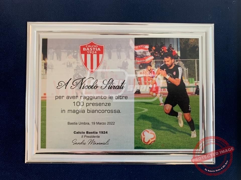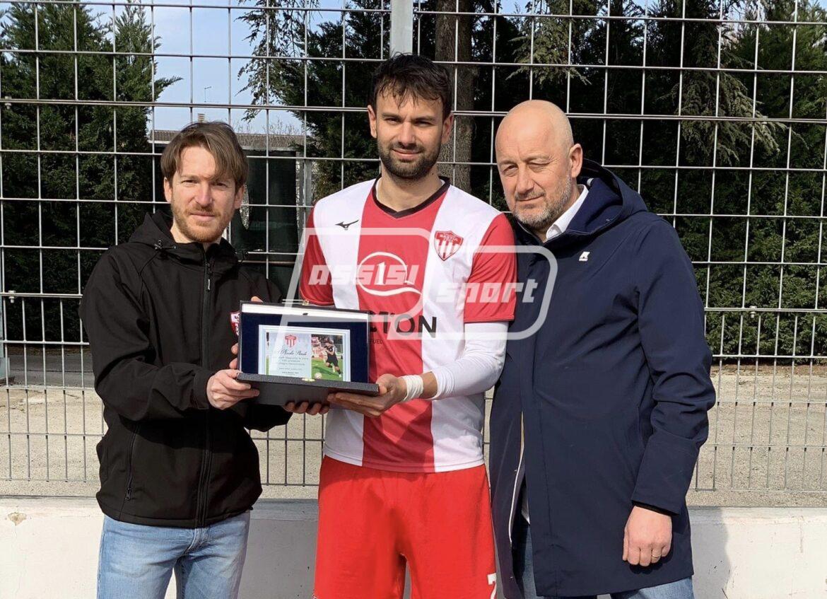 Prima della partita con il Lama il Bastia Calcio 1924 ha voluto premiare con una targa ricordo Nicolò Stirati per aver raggiunto l’importante traguardo di oltre 100 presenze in maglia biancorossa, per la precisione 120 presenze con 33 gol all’attivo: