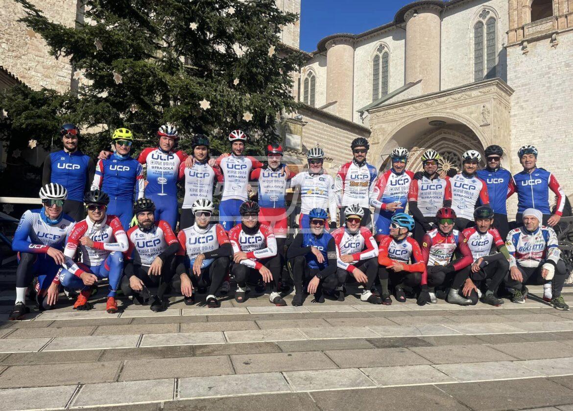 Non solo gare. Nella bella domenica di sole (del 18 dicembre) la bella uscita del gruppo amatoriale UCP per il consueto brindisi augurale per le prossime festività. Tabella di marcia rispettata al minuto che ha visto i circa 25 tesserati -principalmente gli stradisti visto che i ciclocrossisti sono stati impegnati nella lunga stagione del cross – partire da Ponte San Giovanni per poi toccare Torgiano, Bettona, Bevagna, Foligno, Spello e infine Assisi dove si è sostato per la foto sotto l’albero di Natale di piazza San Francesco. Poi tutti a Petrignano dove, presso l’Hotel La Torretta, è stato predisposto l’aperitivo per il brindisi augurale.