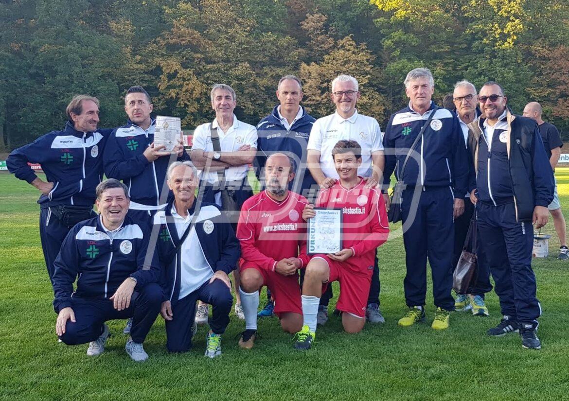 “La cittadina tedesca – raccontano i protagonisti in una nota – è gemellata da 30 anni con Bastia Umbra e dall’11 al 14 ottobre festeggerà l’anniversario del gemellaggio a cui sarà presente una delegazione della città umbra. Per quanto riguarda la parte sportiva – dicono – 3 gol di Pompili, 1 di Cianetti, 1 di Armati hanno permesso di essere primi nel girone eliminatorio a pari merito con un’altra squadra, perso ai rigori perciò secondi, semifinali pareggiato 1-1 perso di nuovo ai rigori, finale per il terzo posto finito 1-1, ma questa volta si è vinto ai rigori!”.