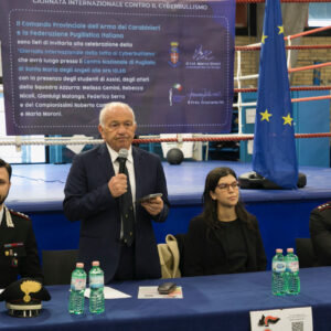 “Bullismo e Cybebullismo sono problemi sociali con cui voi ragazzi vi confrontante giornalmente – ha detto ai ragazzi il colonnello dei Carabinieri Marco Sivori – parlatene e non tenete dentro questa problematica, su questo ring possiamo salirci tutti, con corretti e sani principi”.