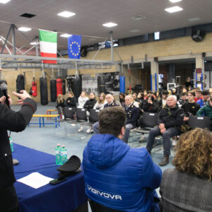 Sivori ha anche risposto alle domande interessate degli studenti. “Come detto in questo ring ci possiamo salire tutti – ha spiegato il Colonnello dei Carabinieri in risposta alla domanda di un ragazzo che chiedeva il perché svolgere questo tipo di incontro in una palestra – ma il bullo deve essere messo all’angolo, deve stare da solo. Mentre gli altri devono stare tutti insieme. Sono tanti gli episodi a cui assistono molti compagni di classe, a cui va il compito di intervenire. Se non intervieni – ha sottolineato – è lo stesso un comportamento vigliacco. Oggi siamo in una palestra d’eccellenza, la palestra di chi ci rappresenta a livello mondiale”.
