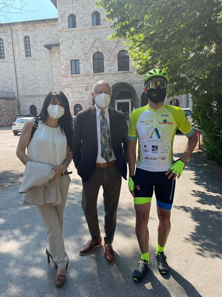 “Quale miglior luogo se non il nostro Istituto Serafico per dare il senso di una vera ripartenza?” – ha scritto il sindaco di Assisi Stefania proietti in una nota diffusa via Facebook, che ha accolto i protagonisti insieme all’assessore Massimo Paggi proprio davanti all’Istituto Serafico di Assisi.