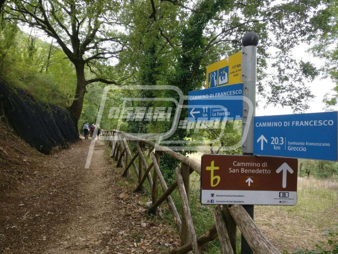 Oltre una trentina le località attraversate. Delle 18 località che faranno da partenza-arrivo 11 sono in territorio del Lazio, 7 in Umbria. Di seguito l’elenco completo del cammino, con indicazione dei chilometri e della difficoltà per singola tappa: 1) 18/9, Roma San Pietro-Fonte Nuova (23 km, facile); 2) 19/9, Fonte Nuova-Monterotondo (24 km, facile); 3) 20/9, Monterotondo-Palombara Sabina (12 km, facile); 4) 21/9, Palombara Sabina-Montelibretti (17 km, mediamente facile); 5) 22/9, Montelibretti-Poggio Moiano; 6) 23/9, Poggio Moiano-Poggio San Lorenzo (13 km, facile); 7) 24/9, Poggio San Lorenzo-Rieti (18 km, facile); 8) 25/9, Greccio-Rieti (19 km, facile); 9) 26/9 Rieti-Poggio Bustone (19 km, mediamente facile); 10) 27/9, Poggio Bustone-Labbro (13 km, facile); 11) 28/9, Greccio-Torre Orsina (18 km, difficile); 12) 29/9, Torre Orsina-Ceselli (18 km, facile); 13) 30/9, Ceselli-Spoleto (12, difficile); 14) 1/10, Spoleto-Trevi (12 km, mediamente facile); 15) 2/10, Trevi-Spello (20 km, facile); 16) 3/10, Spello-Santa Maria degli Angeli (15, facile); 17) 4/10, Santa Maria degli Angeli-Assisi (5, facile).