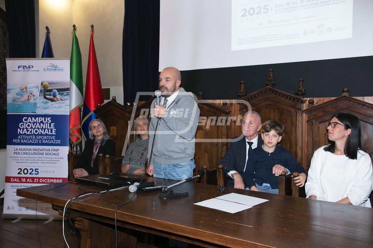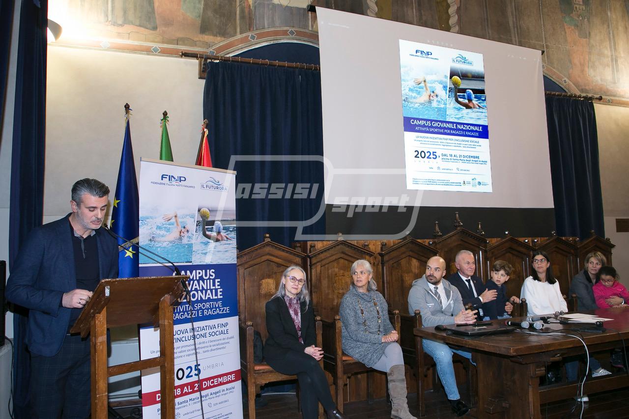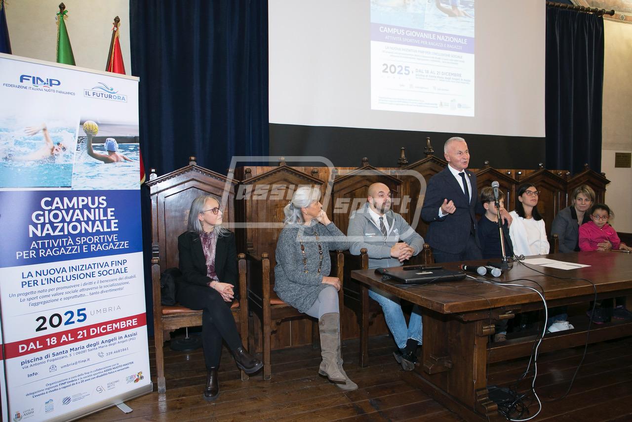(Alessandro Casagrande Contardi) Ad Assisi sta per arrivare la prima edizione del Campus giovanile nazionale FuturOra, che si terrà dal 18 al 21 dicembre presso la piscina comunale di Santa Maria degli Angeli. Nella serata di martedì 2 dicembre si è tenuta la conferenza stampa di apertura, nella Sala della Conciliazione ad Assisi, dell’evento organizzato dalla Federazione Italiana Nuoto Paralimpico, dal Comitato Regionale FINP e dall’Assisi Nuoto Master, con il patrocinio della Città di Assisi.