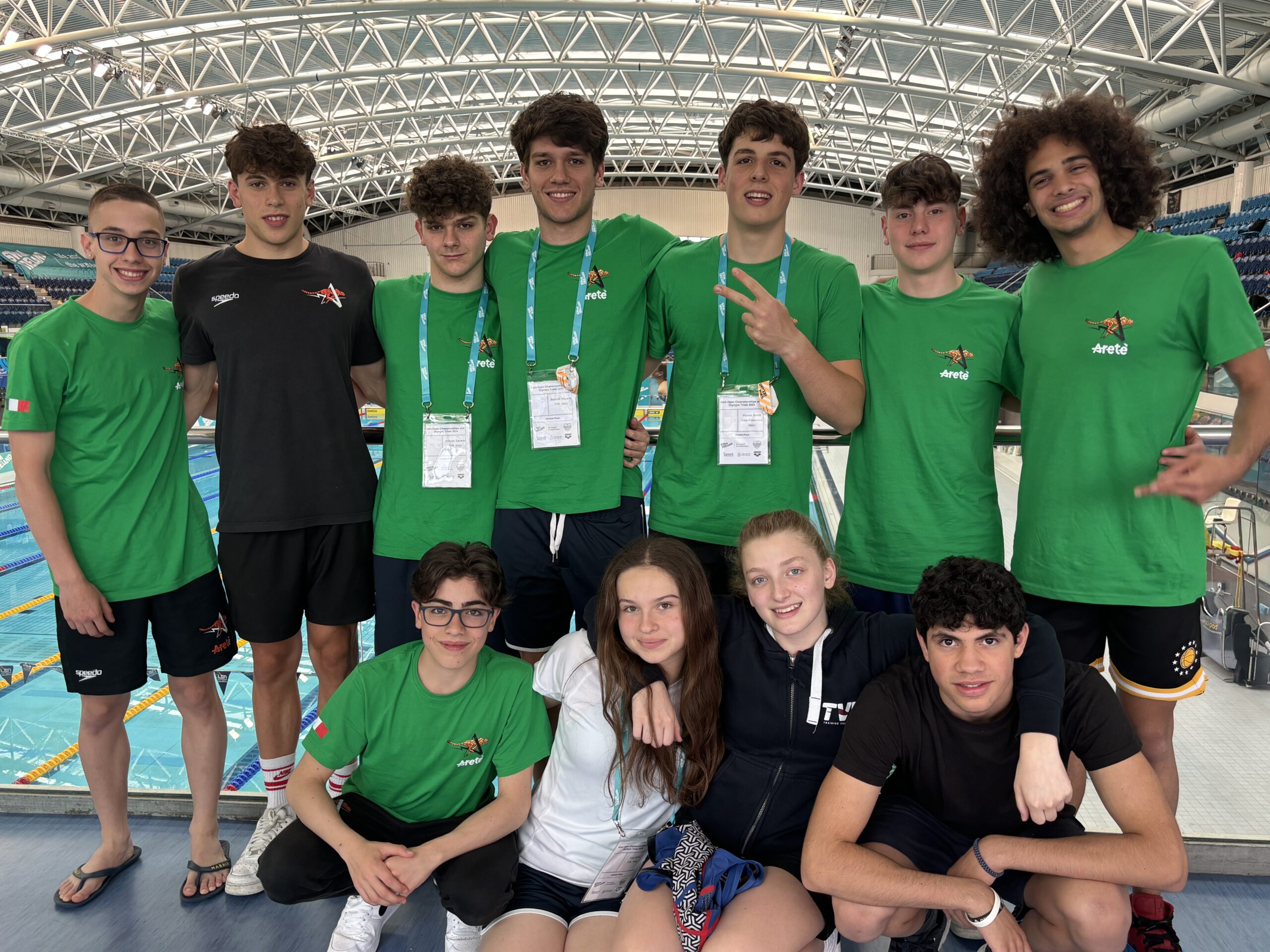 Nonostante una condizione di salute non eccelsa di grande spessore la finale juniores raggiunta anche da Marta Rosini sempre nei 400 sl con il proprio personale portato a 4.46”. Eccellenti le prestazioni di Iacopo Agostinelli autore di 50 e 100 rana con finale B sfiorata, di Marco Cruciani nei 200 rana con un primato personale sbriciolato , di Mattia Piccioni in finale juniores nei 100 dorso e autore di un importante progresso cronometrico e di Davide Moretti che sfiora l’ingresso nella finale B dei 100 sl. Contributo importante di Riccardo Antonelli che avvicina i suoi record personali e si prende la soddisfazione di entrare nei primi 15 sia nei 50 dorso che nei 50 df! Un’esperienza di grande impatto per questi atleti (alcuni tesserati TVN-Gubbio sotto la direzione tecnica di Simone Palombi) ospiti fra l’altro delle famiglie di atleti irlandesi dell’Alsaa Dublino, la società con la quale Areté è gemellata.