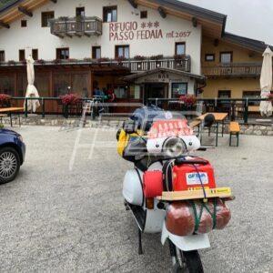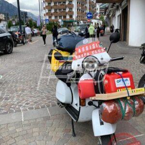 “Viaggio in solitaria del nostro socio Emanuele Bazzarri con il suo Px 150: Diga del Vajont-Cortina-Canazei-Lago di Garda, alcuni luoghi toccati sempre portando in alto il VC Assisi” – si legge in un post diffuso via Facebook dal Vespa Club Assisi.