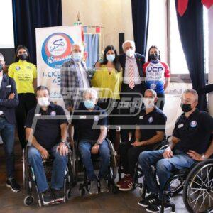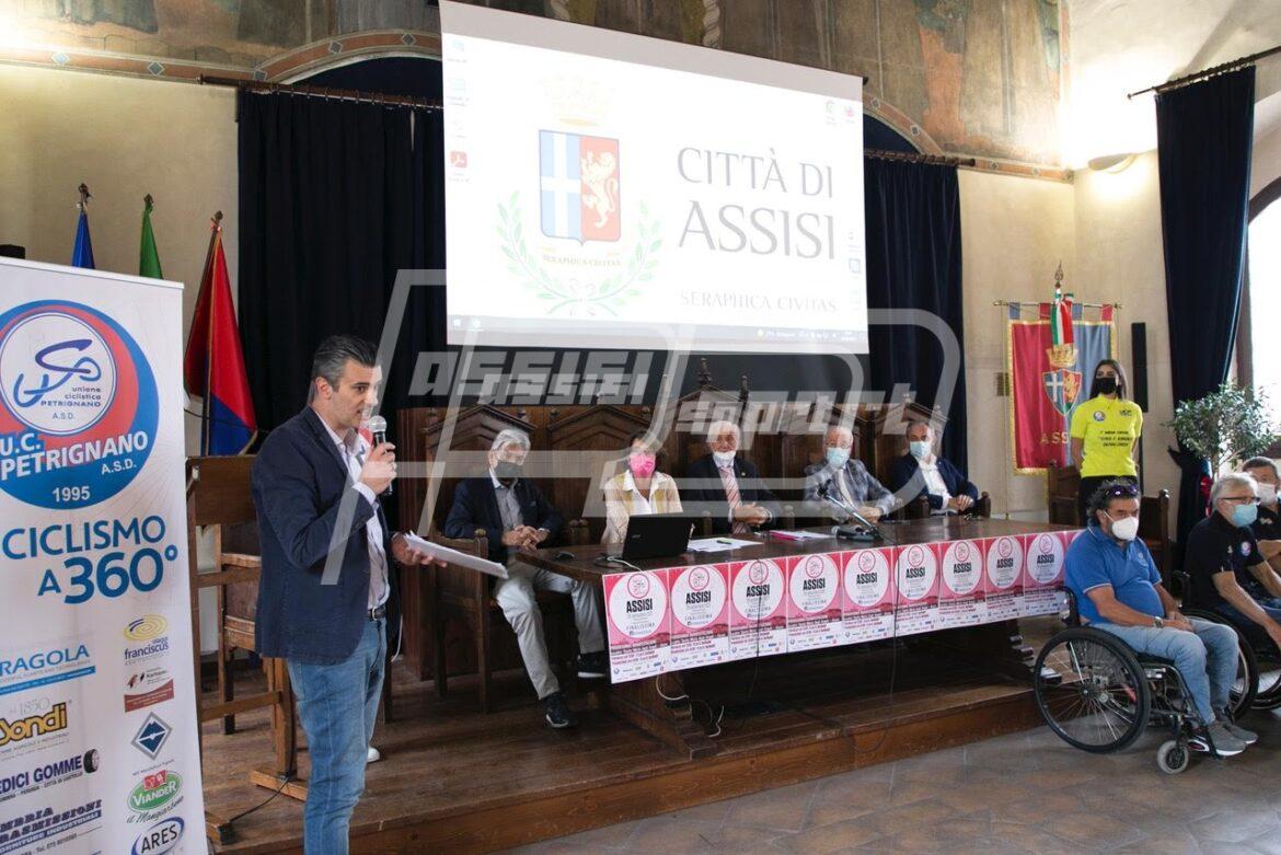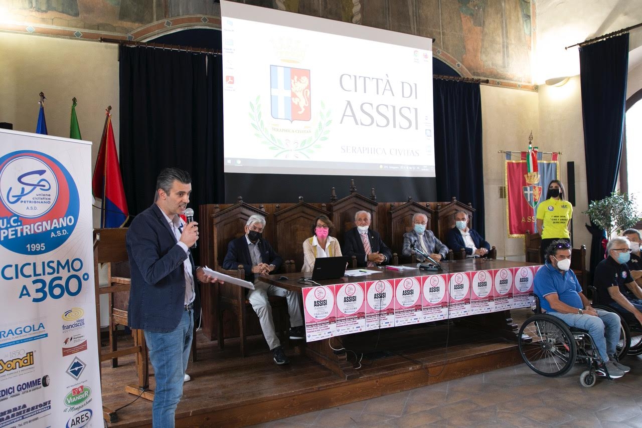 Presenti alla conferenza stampa di presentazione del Giro Handbike Assisi 2021 Gianluca Tassi, presidente regionale Umbria del Comitato Paralimpico e Luciano Bracarda, presidente provinciale Perugia di Federciclismo. Al tavolo anche Fausto Collarini, presidente onorario UC Petrignano e Walter Ferrari vicepresidente SEO.