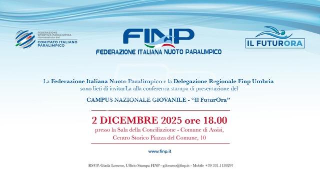 Tutto pronto per la prima edizione del Campus nazionale giovanile – “Il FuturOra”. L’evento organizzato dalla Federazione Italiana Nuoto Paralimpico, insieme alla delegazione regionale FINP Umbria, l’Assisi Nuoto Master e con il patrocinio della Città di Assisi si terrà dal 18 al 21 dicembre presso la piscina comunale di Santa Mara degli angeli.