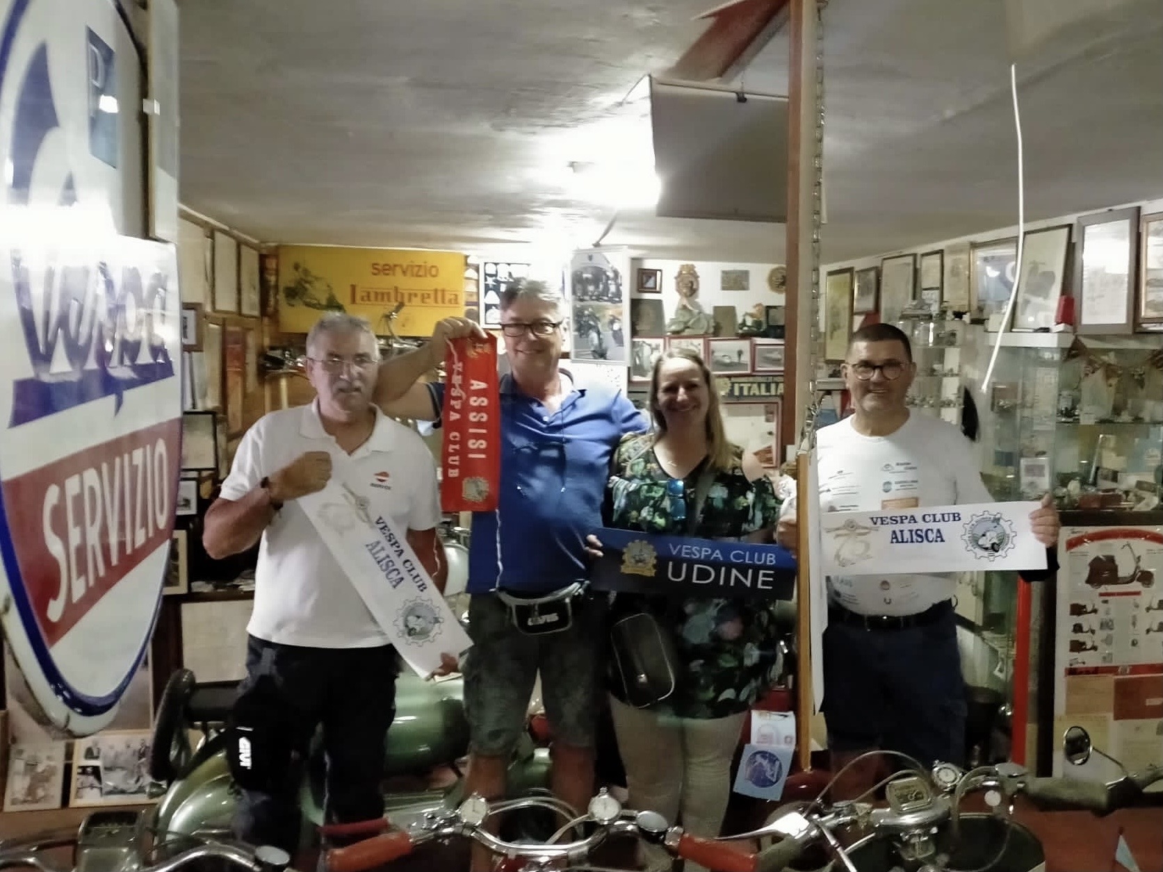“Gli amici vespisti – recita la nota del Vespa Club Assisi – appartenenti al Vespa Club Udine sono stati accolti dal socio del Vespa Club Assisi Sergio Sciarpetti, che ha mostrato loro anche il suo Museo dello Scooter oramai diventato meta di tantissimi vespisti”.