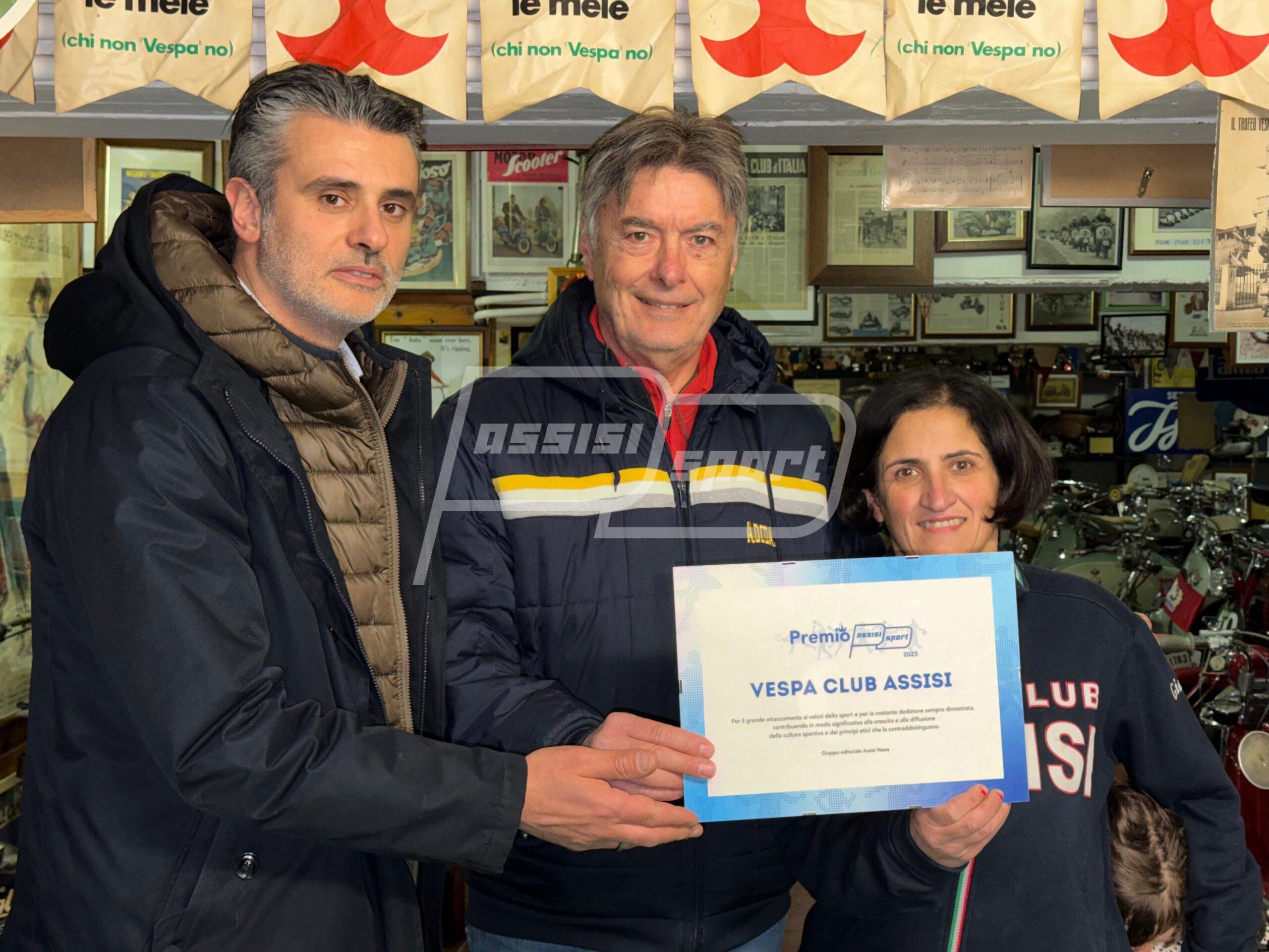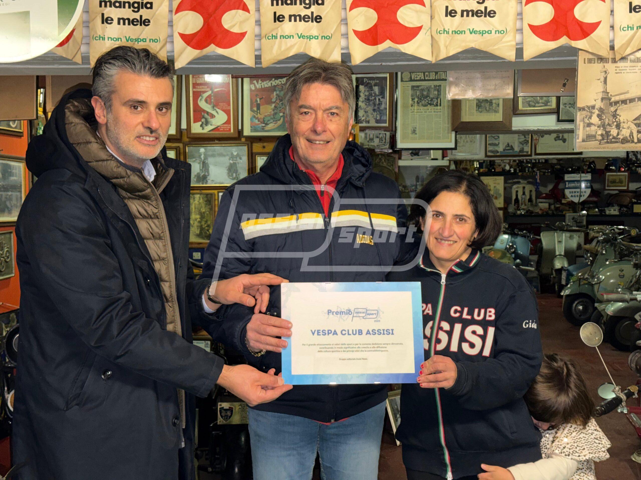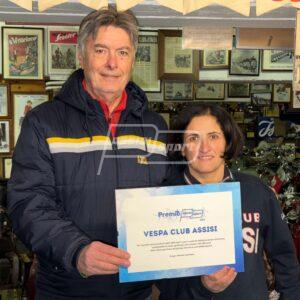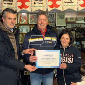 Nella giornata di giovedì 18 dicembre, Assisi Sport – tramite il direttore di testata Assisi News, Stefano Berti – è andato a trovare la presidente del Vespa Club Assisi, Giada Pauselli, conferendo alla società l’attestato della redazione. L’attestato è stato ritirato alla presenza di Sergio Sciarpetti, all’interno del bellissimo Museo della Vespa a Santa maria degli Angeli.