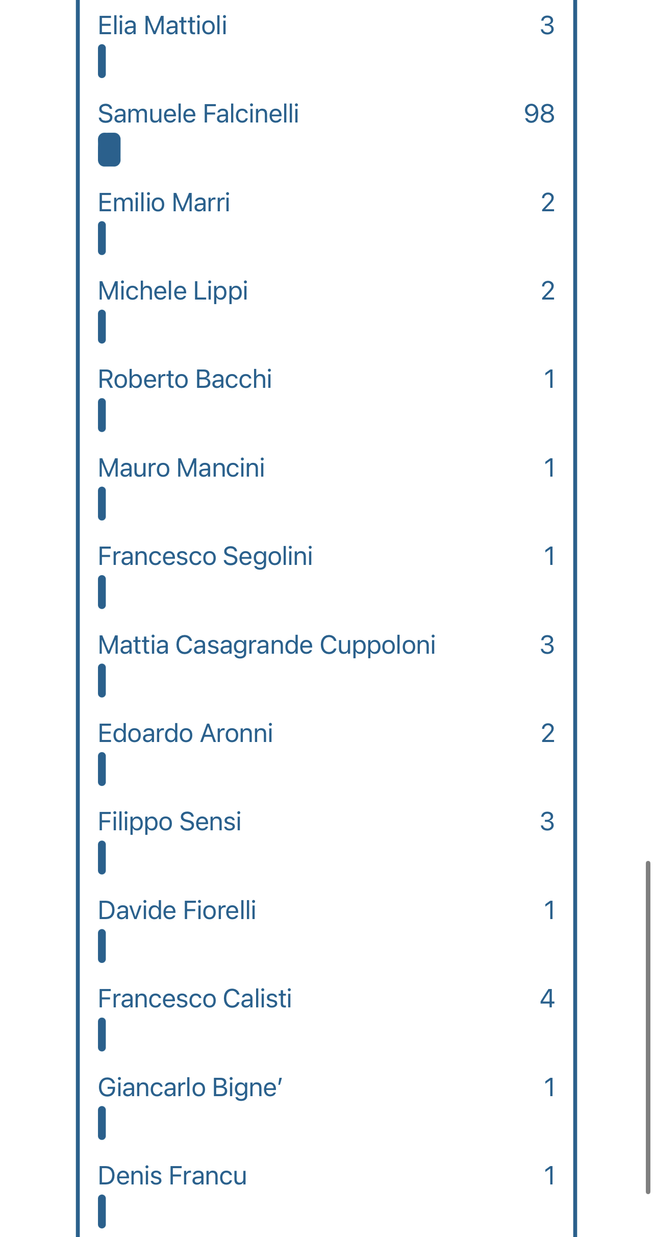 – FRANCESCA MENICHELLI atletica leggera, salto in alto, medaglia di bronzo ai campionati italiani master, terza nella sua categoria a livello nazionale, anno 2023, con la misura di 1mt41cm anche suo personal best