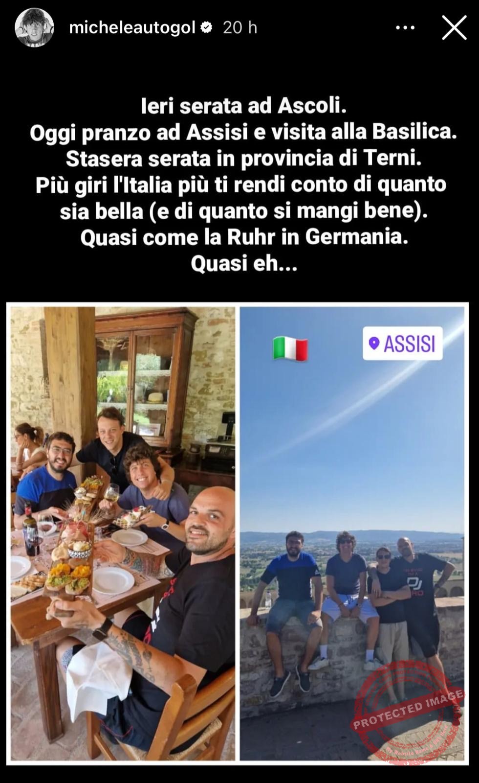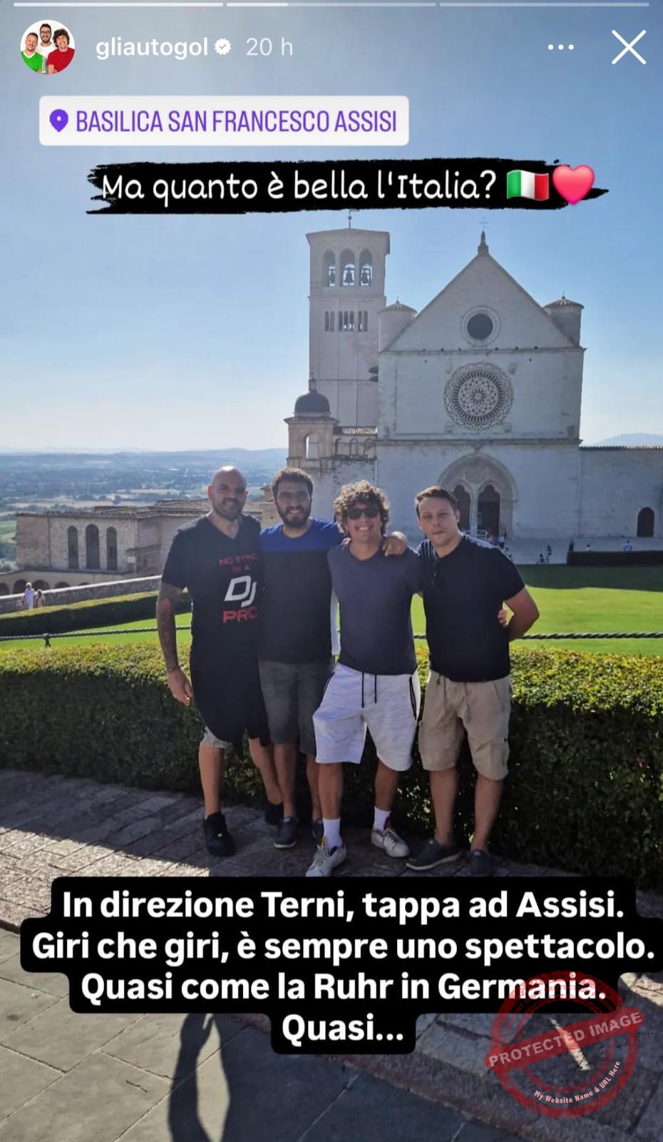 “Ma quanto è bella l’Italia, Assisi è sempre uno spettacolo” – hanno scritto via social postando l’immagine davanti alla basilica di San Francesco. “In direzione Terni, tappa ad Assisi. Giri che giri, è sempre uno spettacolo. Quasi come la Ruhr in Germania. Quasi…” – l’immancabile battuta sarcastica.