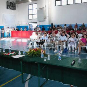 (Agnese Paparelli) È stato un pomeriggio ricco di commozione quello di domenica 19 giugno in cui è stata dedicata la palestra di Rivotorto a Mauro Venarucci detto il “Mecio”. Presenti le istituzioni – tra cui il sindaco Stefania Proietti, la presidente del consiglio comunale Donatella Casciarri, l’assessore Veronica Cavallucci e i consiglieri comunali Scilla Cavanna e Giuseppe Cardinali – le associazioni, la famiglia di Mauro, gli amici e compaesani. A moderare l’incontro il direttore del gruppo editoriale Assisi News Stefano Berti. La cerimonia è iniziata con la storica banda di Rivotorto che ha suonato l’Inno di Mameli, poi il toccante minuto di silenzio e di raccoglimento in ricordo di Mauro Venarucci e delle vittime del covid.