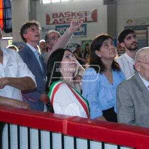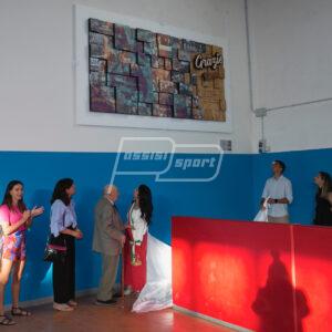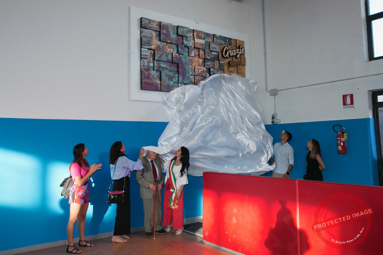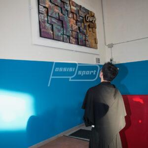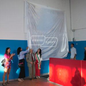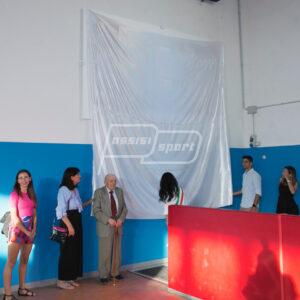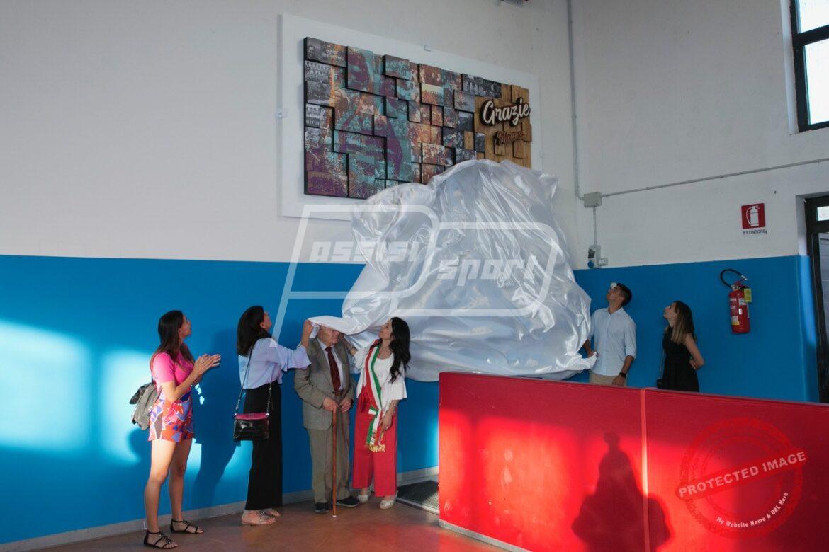 Prima dello svelamento dell’opera, che da oggi campeggia nel palasport della frazione assisiate al quale dà il nome, emozionanti parole del sindaco Stefania Proietti che ha definito “Mauro un uomo dal cuore grande, uno di famiglia” abbracciando con sentimenti sentiti l’intera famiglia presente. Il Sindaco ha tenuto a ricordare “la grande forza di volontà di Mauro Venarucci e la lotta al terribile virus che in Assisi e in tutto il territorio ha strappato ai propri cari troppe vite umane”.