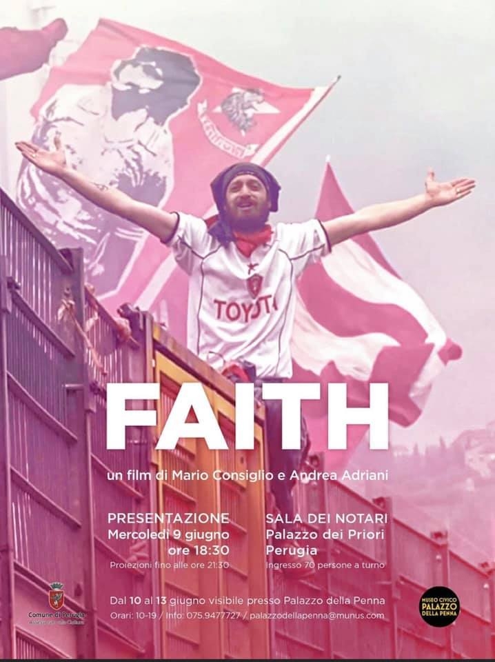 Alla presentazione interverranno, oltre agli autori, l’Assessore alla Cultura Leonardo Varasano, e Gianluca Comotto, Direttore generale dell’A.C. Perugia. Si potrà accedere gratuitamente fino a esaurimento posti, e in seguito il film verrà proiettato fino alle 21.30. Per chi non potrà partecipare all’evento, dal 10 al 13 giugno, Faith sarà visibile all’interno di Palazzo della Penna (Via Podiani, 11 – ingresso gratuito dalle ore 10 alle 19 – tel. 075 9477727).