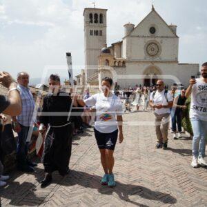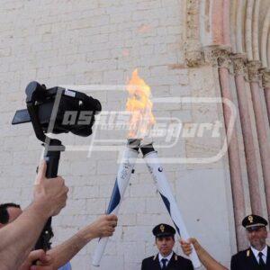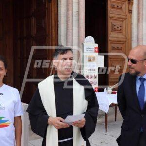 A dare il saluto per primo è stato il sindaco di Assisi Stefania Proietti che, dopo aver ringraziato gli organizzatori per aver deciso di regalare la tappa ad Assisi, ha spiegato perché l’amministrazione ha scelto di accogliere la Fiaccola sotto il Tempio di Minerva: “E’ un luogo simbolo della nostra città, davanti alla chiesa e di fronte al palazzo comunale, il Tempio è un luogo rappresentato anche da Giotto che ha raccontato magistralmente attraverso i suoi dipinti la vita di San Francesco e da qui il legame con il nostro Santo”. Il primo cittadino ha sottolineato “l’importanza dello sport con i suoi valori come fattore di coesione sociale e manifestazioni come queste vanno nella direzione dello sport verso i giovani e invogliano i giovani verso lo sport” e ha ricordato il vincolo che unisce Assisi e Napoli perché la regione Campania lo scorso 4 ottobre ha acceso la lampada votiva davanti alla tomba di San Francesco.