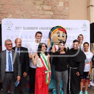 La fiaccola della 30ª edizione della Summer Universiade – Napoli 2019 ha fatto tappa ad Assisi. Il tedoforo partito dal sagrato della Basilica superiore di San Francesco ha raggiunto la piazza del Comune, nel centro storico della città, accompagnato da tre atleti: la giovane campionessa umbra di endurance equestre, Costanza Laliscia, l’ex campione di canottaggio, Bruno Mascarenhas e l’ex pugile, Roberto Cammarelle.