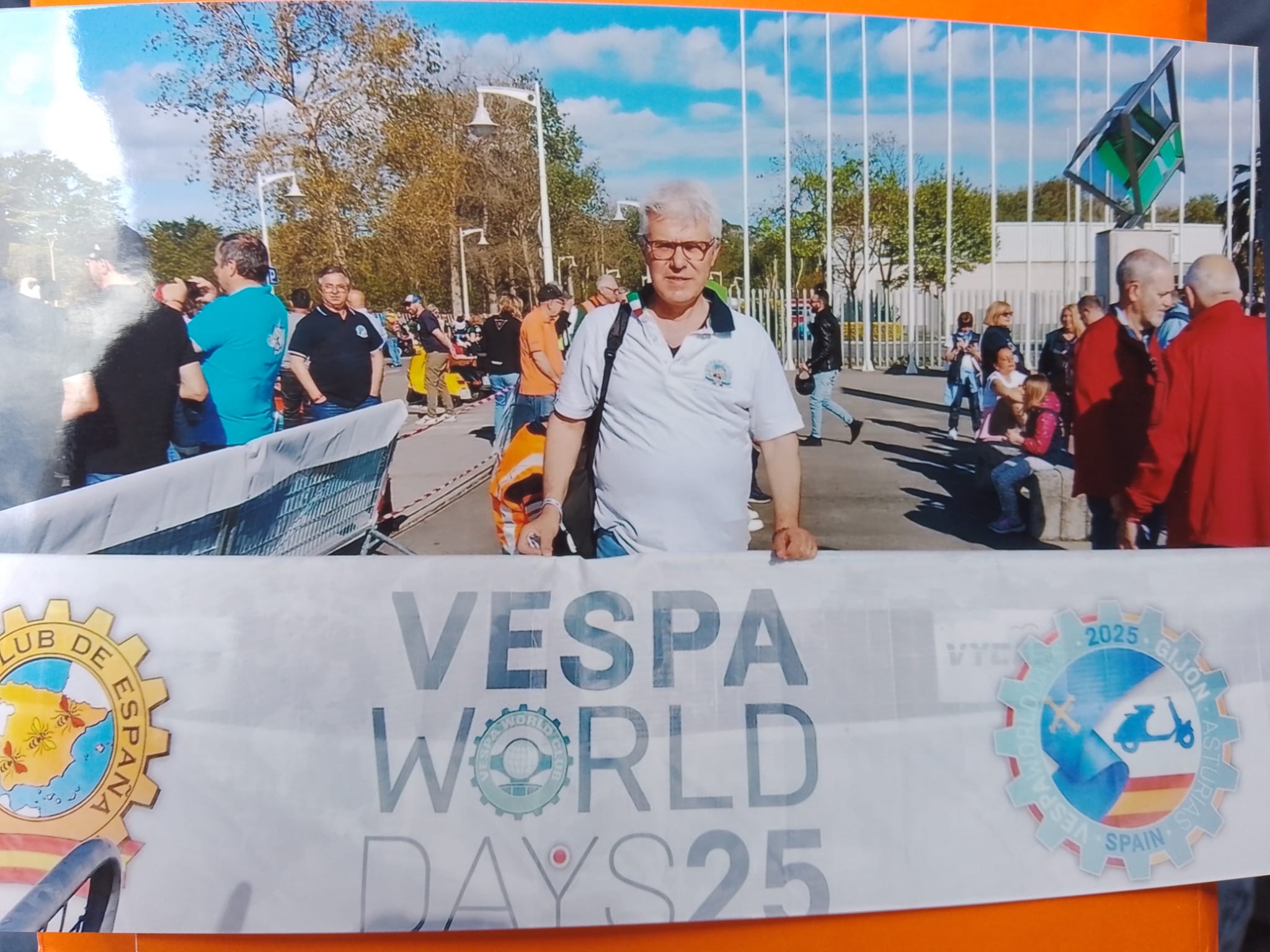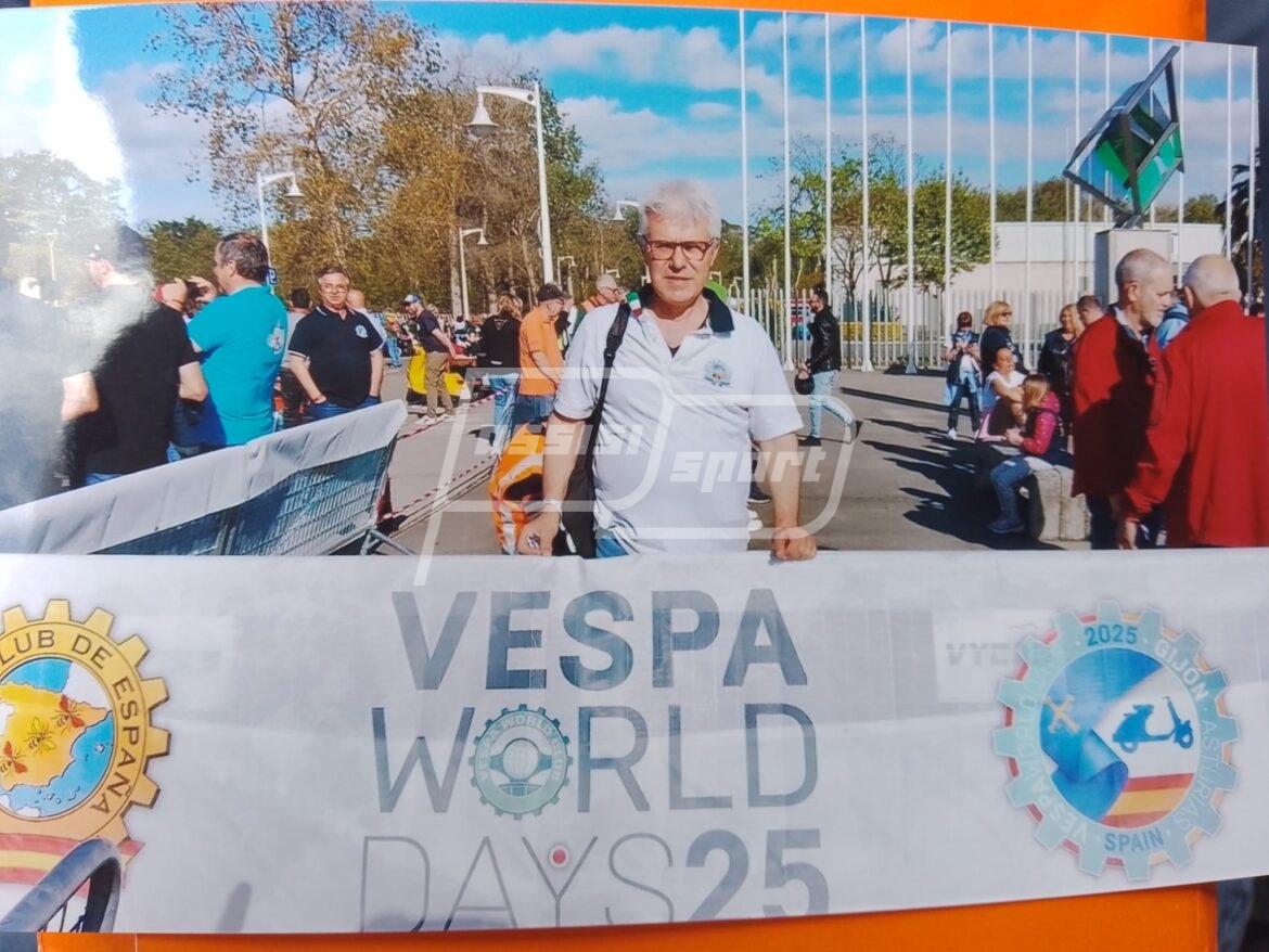 Ad aprire le danze – dal 1 al 4 maggio – è stato Francesco Caltabiano. Già noto per i suoi viaggi vespistici fuori Italia, il socio del Vespa Club ha rappresentato il consorzio assisano al vespa World Days che quest’anno si è svolto in Spagna nella località di Gijon. (Continua dopo la foto)