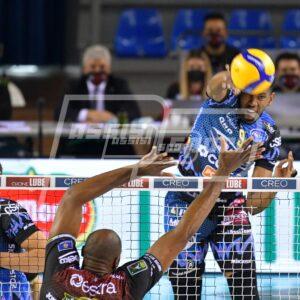 Sfida vibrante, spettacolare, combattuta per tutte le due ore e trentacinque minuti di gioco, decisa da pochi palloni e, sotto il profilo strettamente tecnico, dalla qualità in seconda linea di Perugia (52% di ricezione positiva in una serata dove il servizio Lube è stato impressionante) e dal servizio bianconero che ha portato in dote 11 punti diretti, ma soprattutto quelli determinanti (tutti firmati Plotnytskyi) nel finale caldissimo di terzo e quinto parziale.