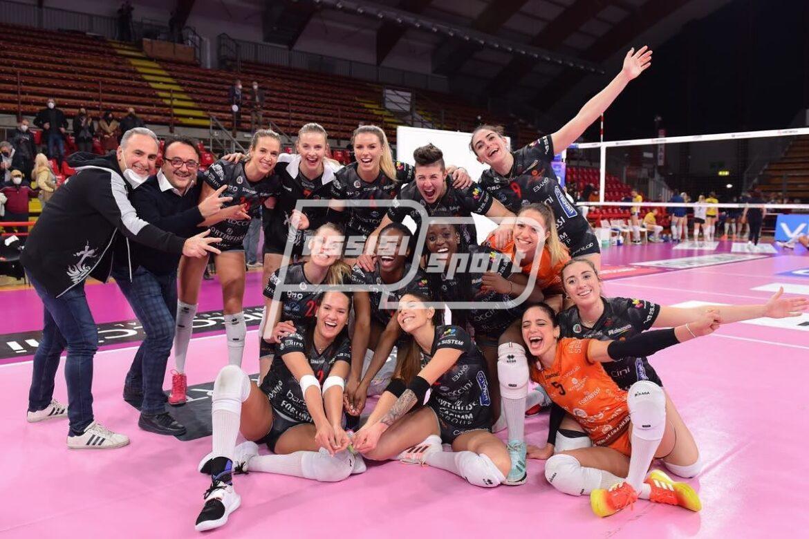 BARTOCCINI-FORTINFISSI PERUGIA: Havelkova 16, Bauer 11, Diop 20, Guerra 19, Melandri 10, Bongaerts 1, Sirressi (L), Melli, Provaroni, Galkowska, Nwakalor, Guiducci. Non entrate: Rumori (L).