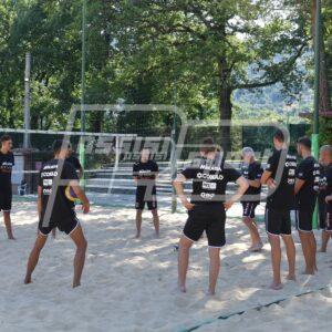 Raduno caratterizzato da una riunione preliminare al palazzetto dove Vital Heynen ha spiegato il programma di lavoro di questa fase iniziale della preparazione e quella che sarà la nuova stagione, poi il gruppo si è trasferito al Lago Verde, struttura limitrofa al PalaBarton, dove ha svolto il primo allenamento stagionale sulla sabbia. Una prima sgambata per iniziare a sciogliere le tossine dopo il lungo stop. Nel fine settimana la squadra proseguirà il lavoro continuando ad allenarsi sulla sabbia, in questo caso presso la struttura lacustre dello Zocco Beach a San Feliciano.